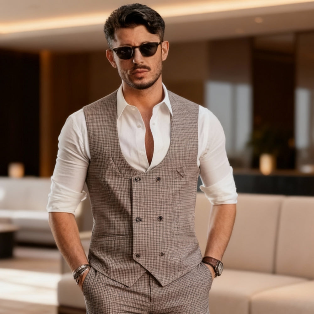 Crafted from premium fabrics such as fine wool, silk blends, or textured linens, the waistcoat can be fully customized in terms of lapel style, buttons, pocket design, lining, and fabric patterns, allowing clients to express their personal style. It adds depth and sophistication to any outfit, maintaining a polished appearance even when the jacket is removed.